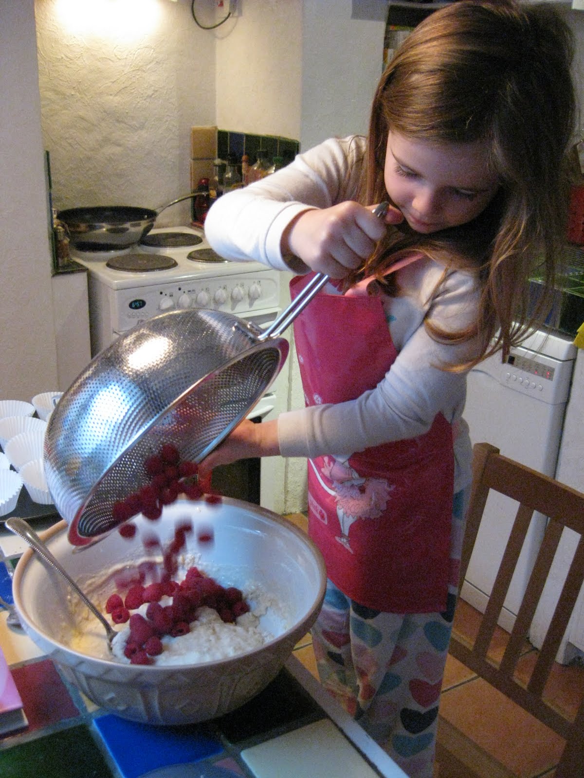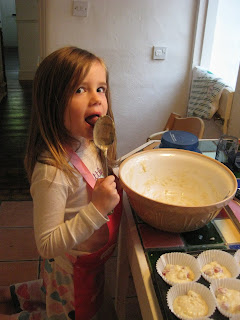 Once we had taken the muffins out of the oven to cool I became so engrossed in the morning’s activities that I completely forgot to photograph the finished product! However, as Izzy always seems far more interested in eating the cake mixture than the cake itself it seems fitting that we end with this photo…
